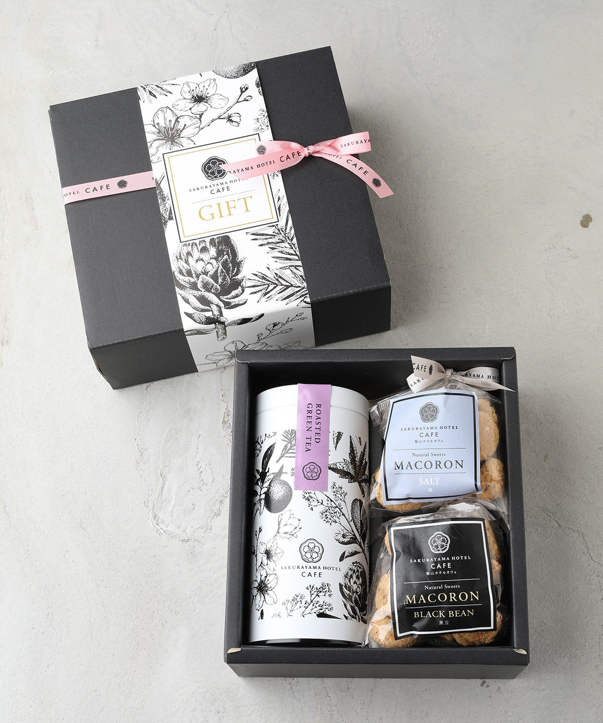 缶入りほうじ茶70g×1 マコロン×2袋のギフトセットです。